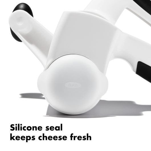 - Includes a compartment with an interior silicone seal that prevents cheese from drying out