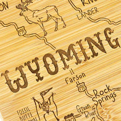 Keep a memory of Wyoming in your kitchen or dining room! This cutting and serving board from Totally Bamboo features the state of Wyoming from Cheyenne to Jackson.